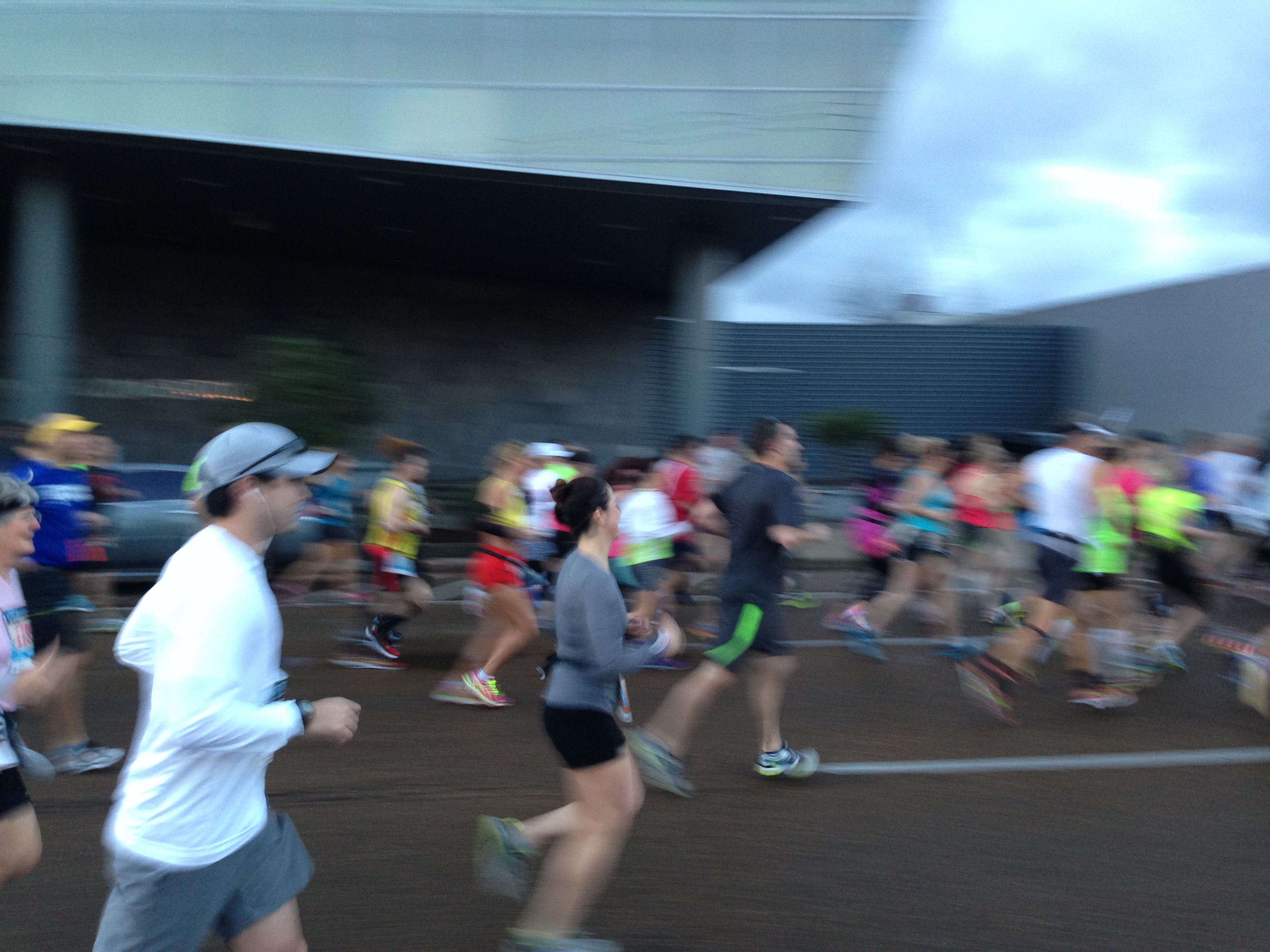 Race morning went smoothly, although pre-race jitters were making my shirt look like I had done quite a warm-up (yay for sweaty pits!). Since there was no 2:10 pace group, I lined up with the 2-hr pace group with the plan that I would run with them as long as I could and slow down when needed. It turned out that the course was surprisingly hilly (so much for the deceptive elevation profile…).