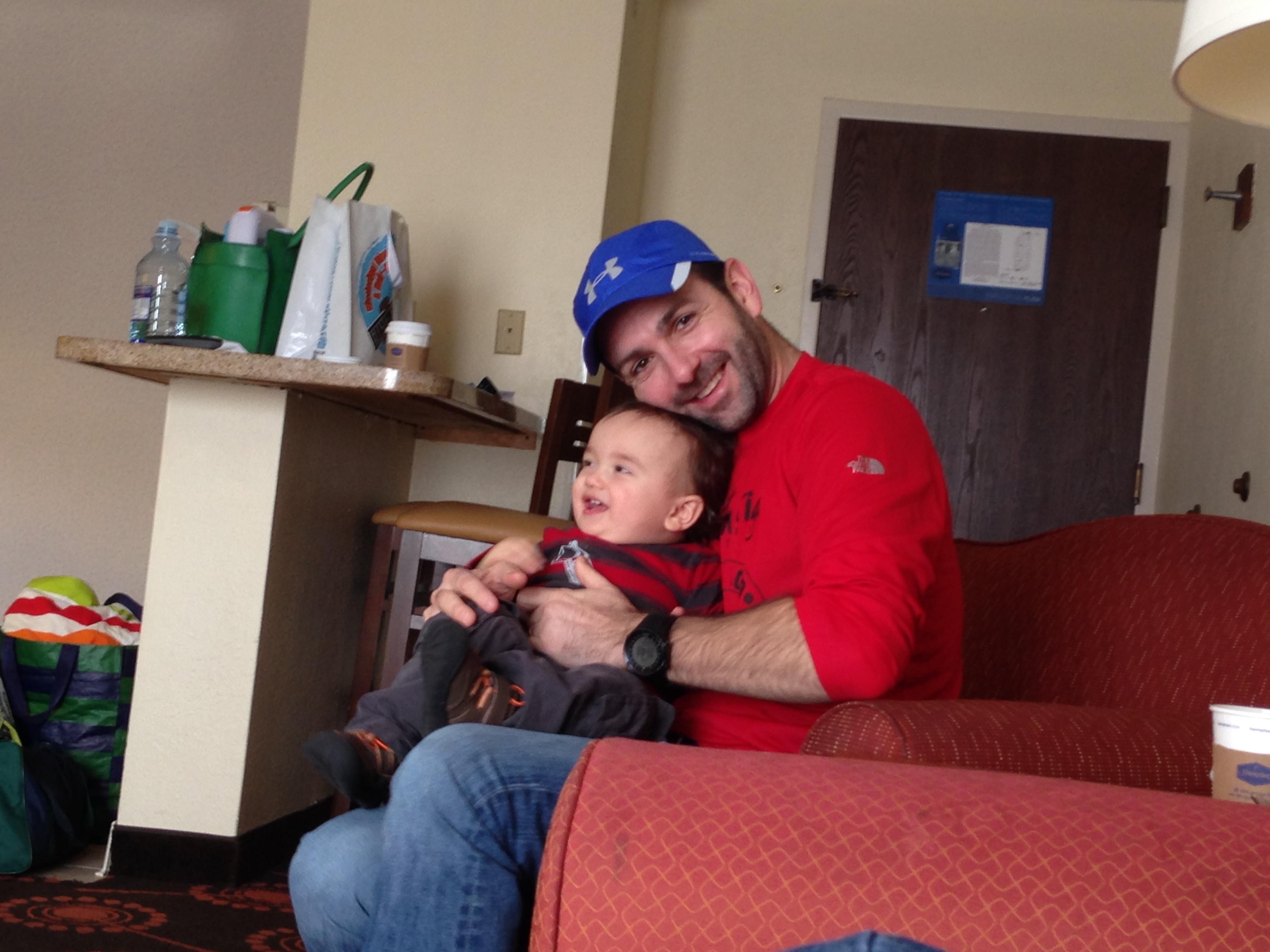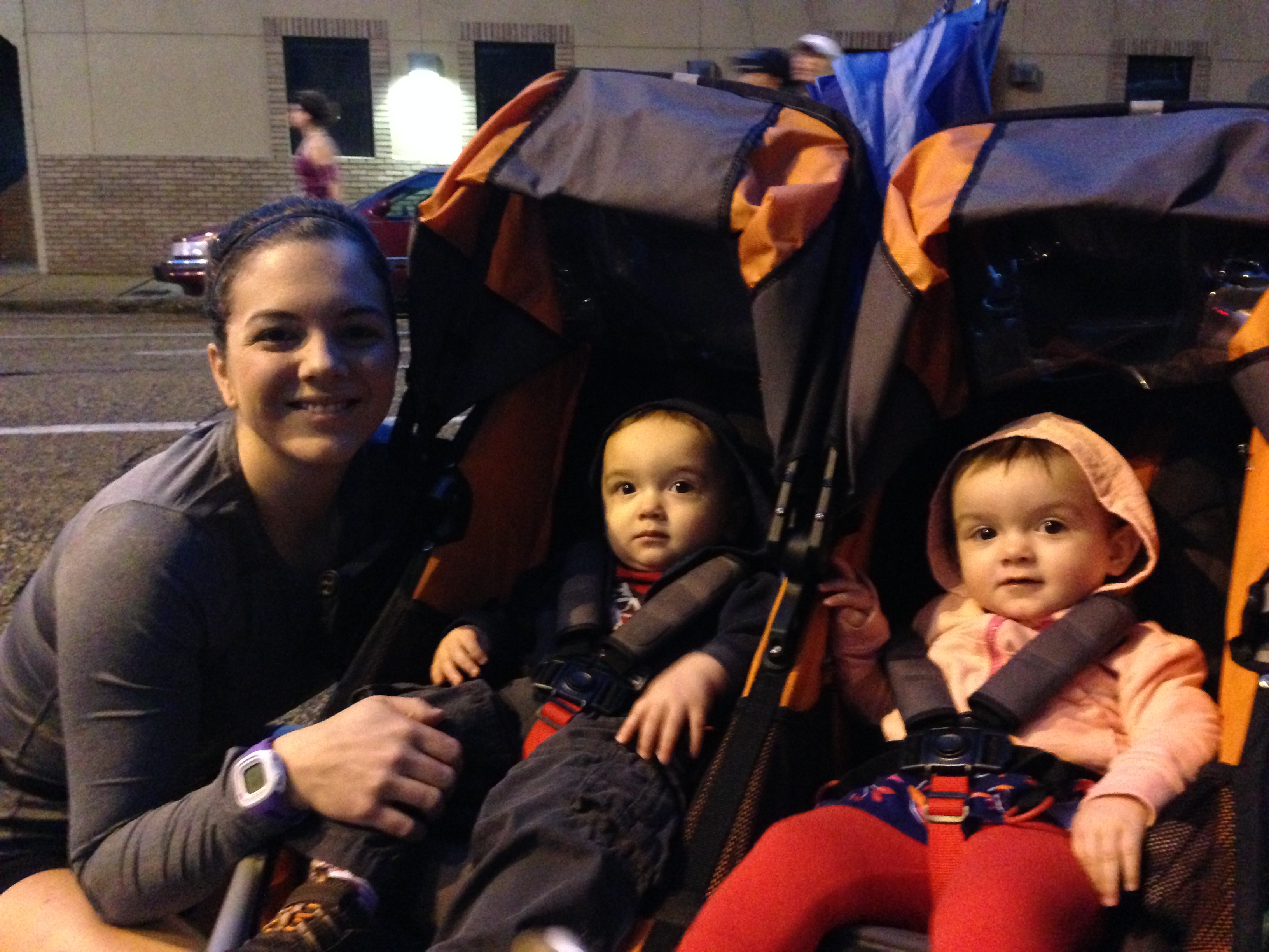 After I got the twins to bed at the hotel, I found my husband fast asleep on the couch. So much for that whole “awesome hotel suite” thing… I watched the news and looked through my race schwag bag–I still haven’t broken out the harmonica or CD, but the 3/4 zip fleece pullover was an awesome surprise.