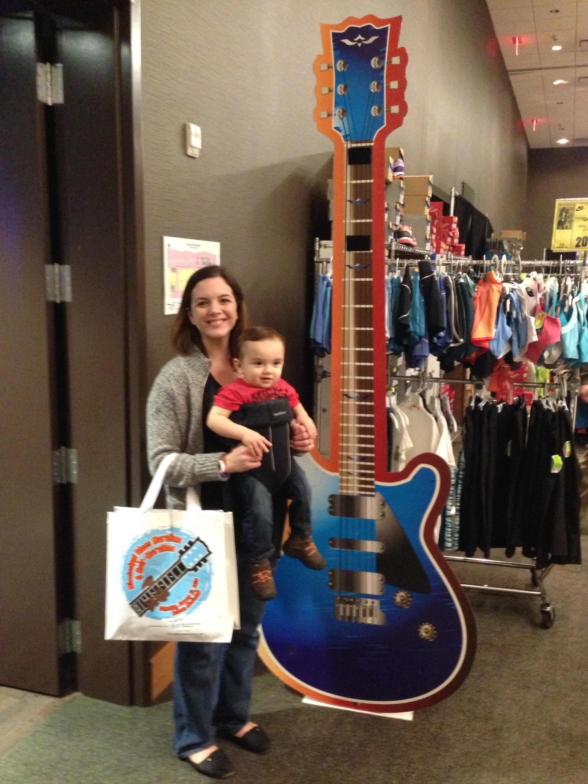 After a relaxing bath and a late check-out from the hotel, we drove out of Jackson without the GPS, having taken the “full tour” the night before. Overall it was a great trip. The race was well-organized and had great post-race goodies: chocolate milk, hot pizza, cold beer. The fleece was great to pull on after the run to keep warm. The medal is ridiculously big–my husband joked that the runners in the full marathon received actual guitars at the finish line. When we later found out that the overall winners were actually presented with REAL GUITARS, we nearly died laughing.